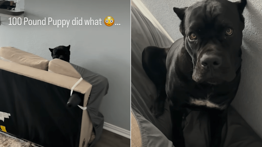 Coming home to find your living room rearranged is usually a sign of a break-in. With Gaston, it’s just another Tuesday. The handle @gastoncanecorso shares the life of a nine-month-old powerhouse who doesn’t quite grasp his own strength yet. In a recent video, we see what happens when a 100-pound puppy decides the living room couch needs a complete structural redesign.
