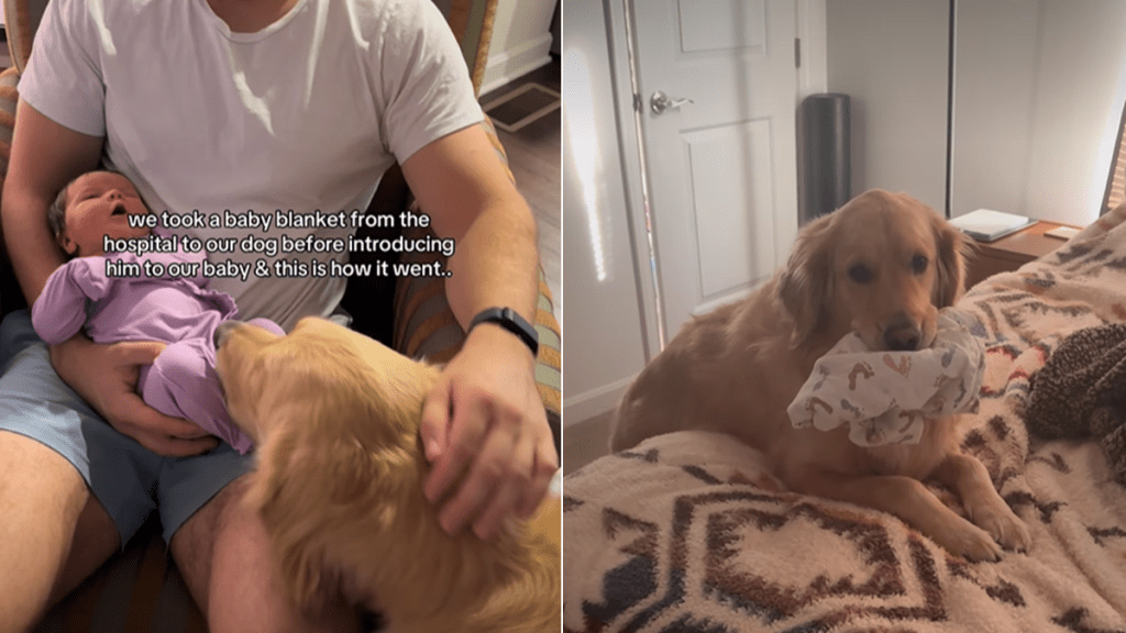 Video Explains Golden Retriever’s Attachment to Baby’s Hospital Blanket